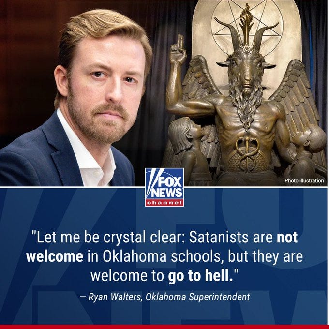 Satanism: “It’s not a religion,” says State Superintendent Ryan Walters.